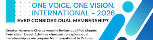 Great Lakes Harmony Region 17 is part of Sweet Adelines International, a worldwide organization of women singers committed to advancing the musical art form of barbershop harmony through education and performance.  Region 17 includes parts of Indiana, Michigan, New York, Ohio and Pennsylvania. We currently have over 600 members in 19 choruses and over 30 registered quartets.